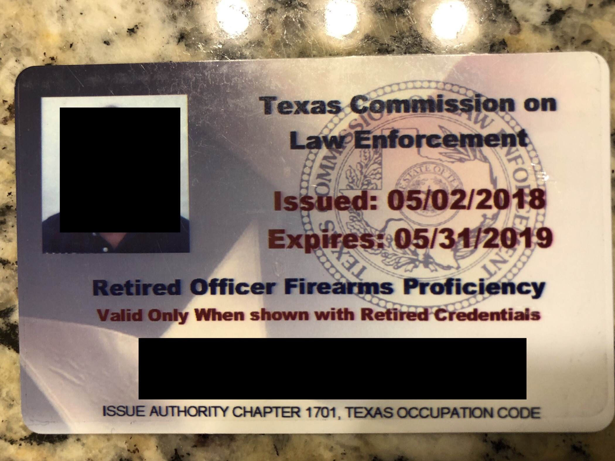 The wording on the TCOLE plastic says almost that.Excaliber wrote: Tue Jan 09, 2018 8:27 amThe TCOLE card should probably be called something like "Retired Officer Firearms Proficiency Card"...