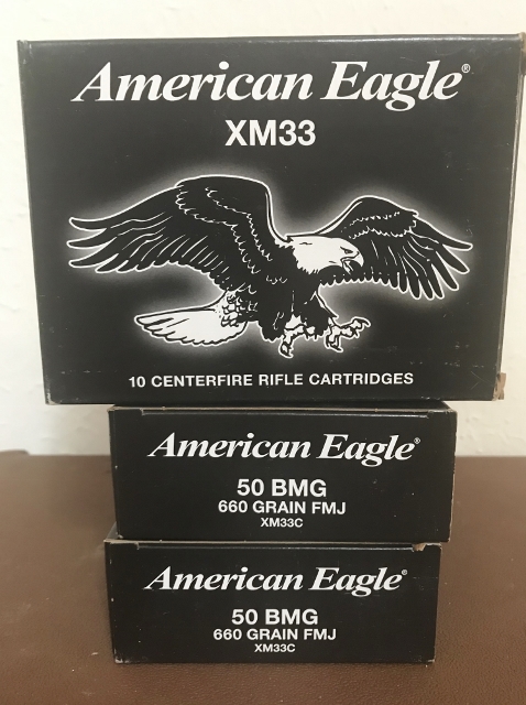 50 BMG American Eagle 660 gr FMJ. 10 round per box. $25.00