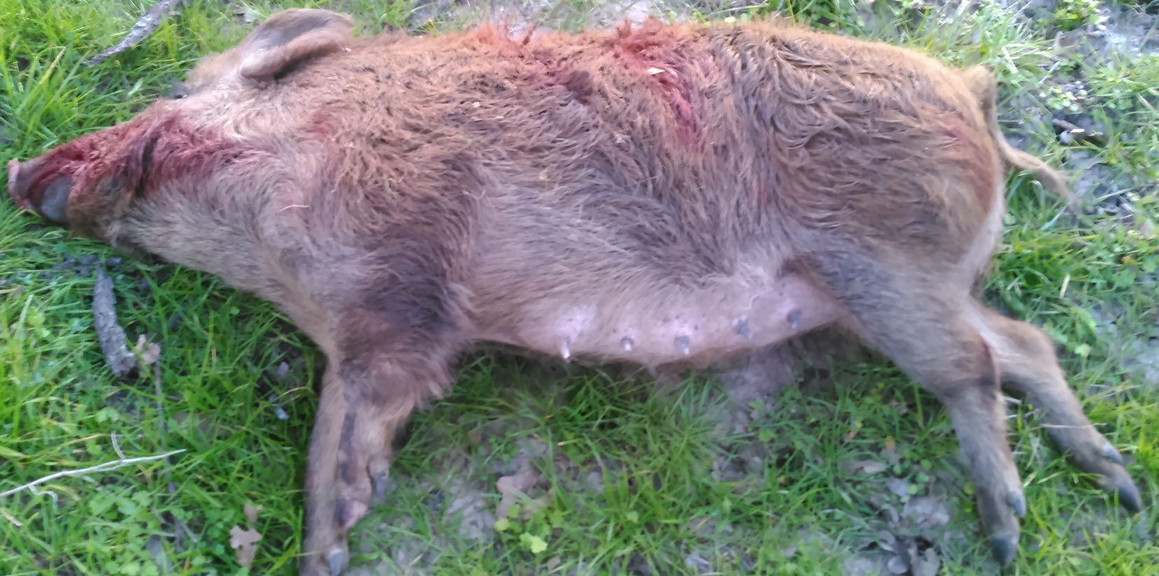 I work part time after work for a friend's dad who farms close to 1k acres. We got a call yesterday that there were 3 pigs (about 60 lbs) in the trap and several others around the trap including one very large boar. After we made some phone calls, to get some extra guns together, we headed to the field to track the loose pigs. Most were gone be we ran across this 200lb sow and her piglets. Counting the ones in the trap, there are 8 less pigs tearing up his fields this morning. When we skinned her, she had at least an inch of fat all the way around her and will make some good sausage.