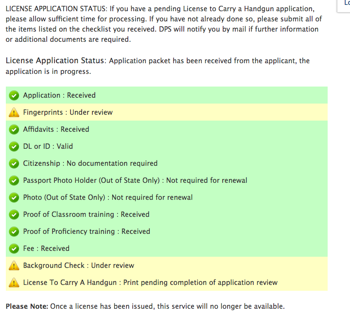 Finally, there has been the progress I've been looking for. This has certainly taken longer than 90 days, but I will have my LTC before my old CHL expires. So, I will not be without.