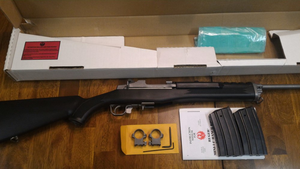 This is a NIB Mini 14 model 5805. Bud's is selling this for $796 cash price. Comes with factory scope mounts and 2-20 rd factory magazines worth another $50 or so but I've misplaced the original 5 round magazine. This was purchased a long time ago and never fired. Got sucked into AR's and never looked back. Also has original box, manual and lock.