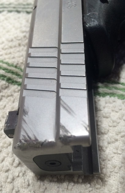 Ahh, ok That gun with Trijicon sights hit the asphalt at 77 MPH hard enough to do the damage you see in the pic, fracture 4 of my ribs and destroy my bike...