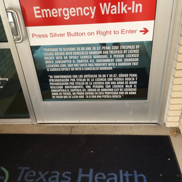 Our church had the Carter Bus Sunday. While I was donating, I sat across an interesting sign. It was the typical Glock gun buster. But below an English and Spanish language sign was the words "Pursuant to HB 30-06 & 30-07". There is no way this can be legal, right?