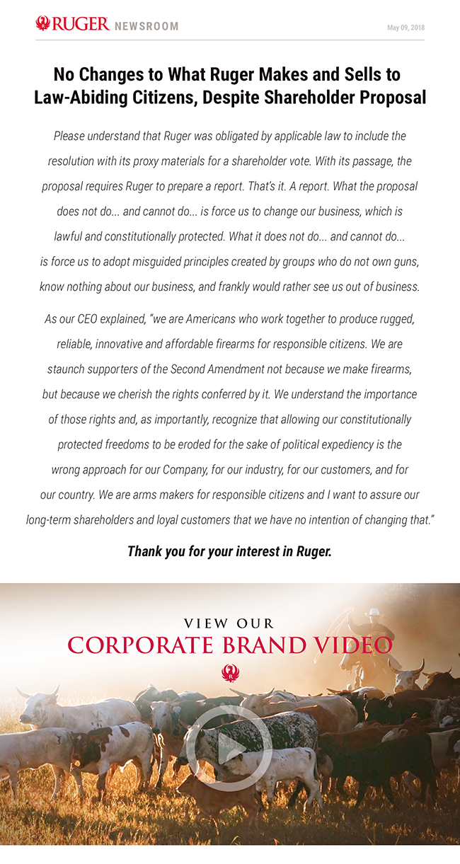 Wow! Incredible---Ruger's Shareholder Proposal Passes