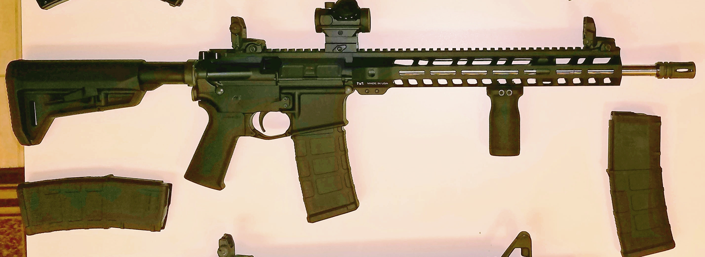 Magpul SL-K stock, SL grip, BUS sights, forgrip, and trigger guard