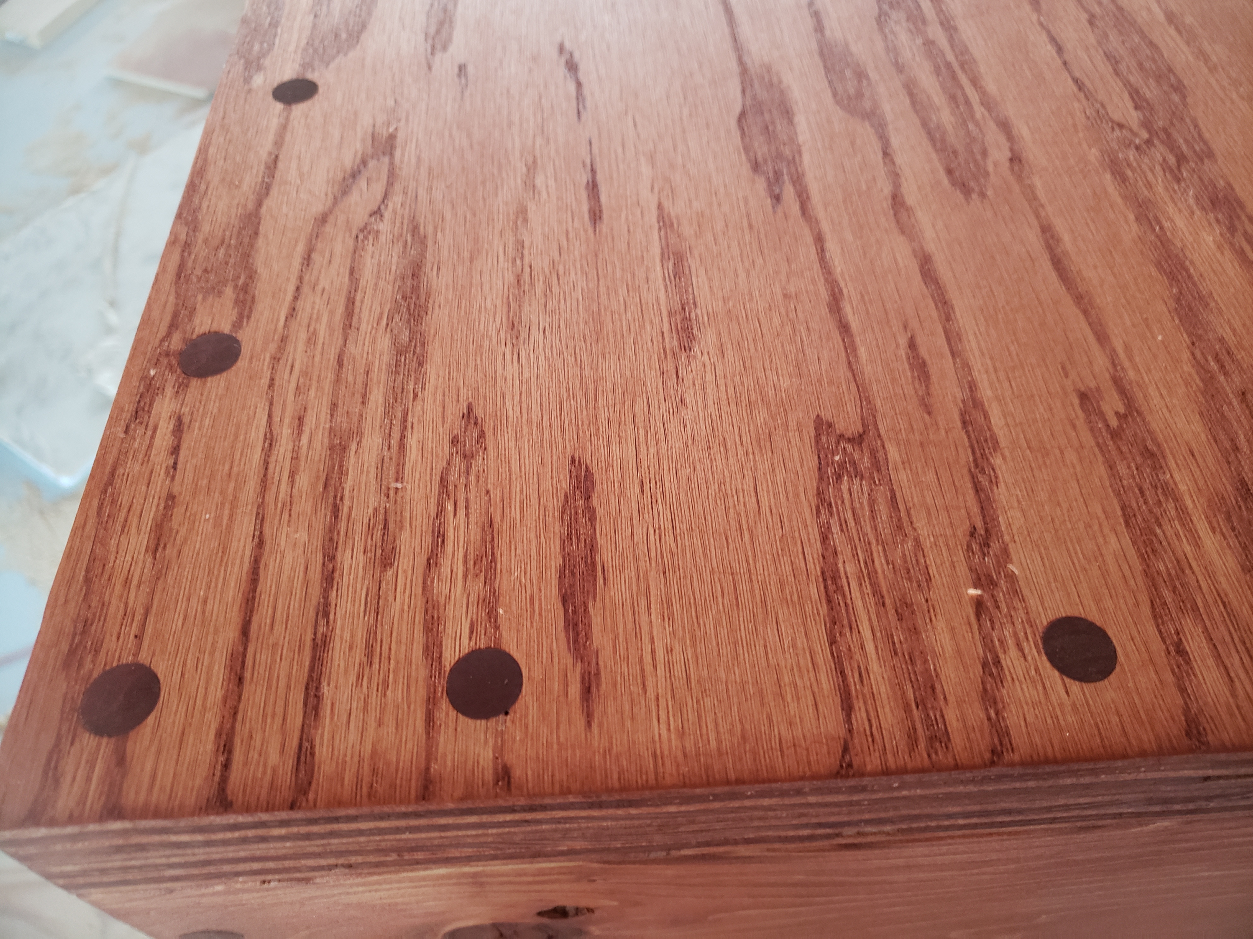 Need to oil removable shelves on the ends and rough sand the spot in the middle to see if I can get stain to take.