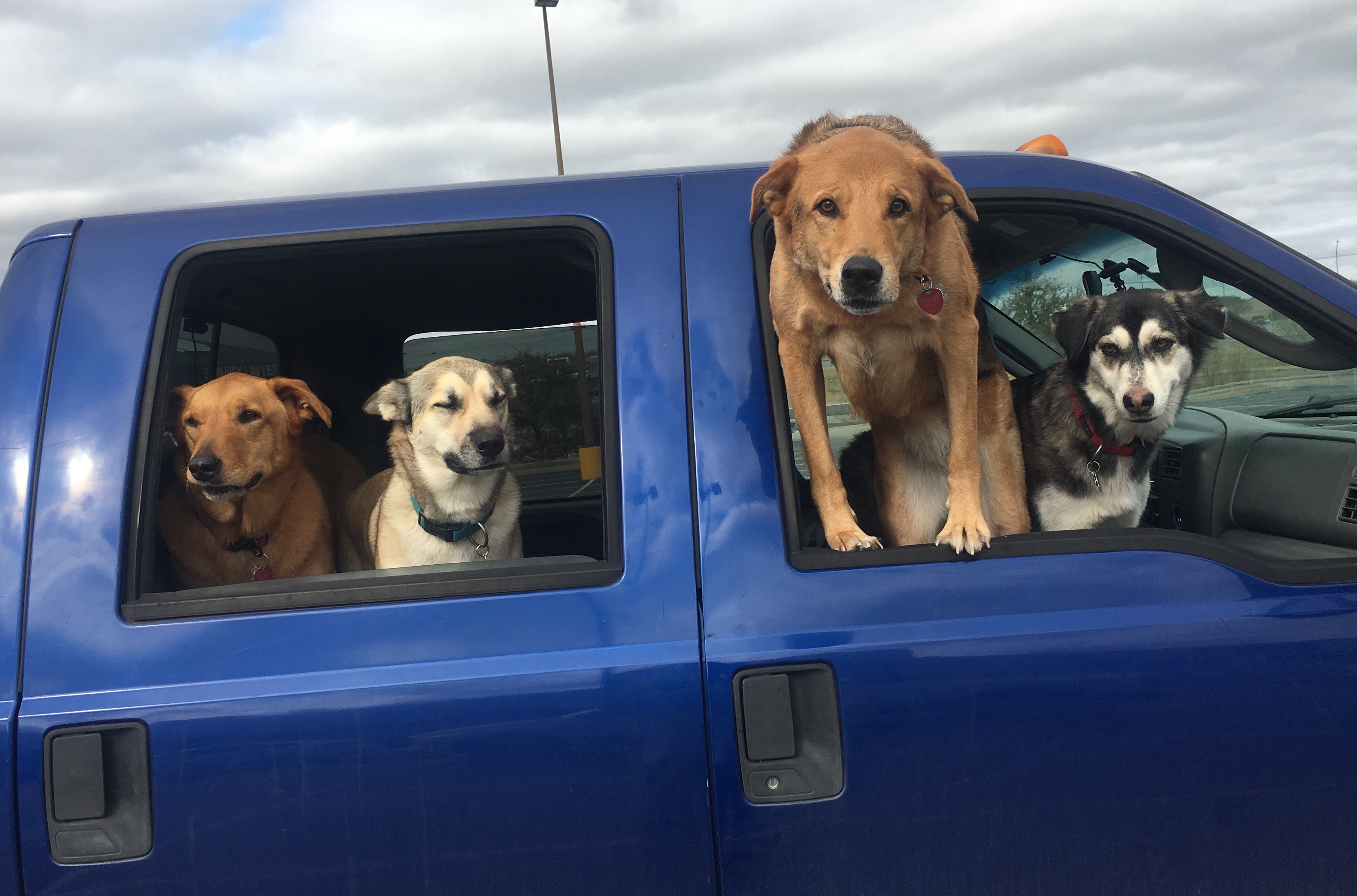 Two intentional rescue mutts, plus a foster mutt who magically stayed.