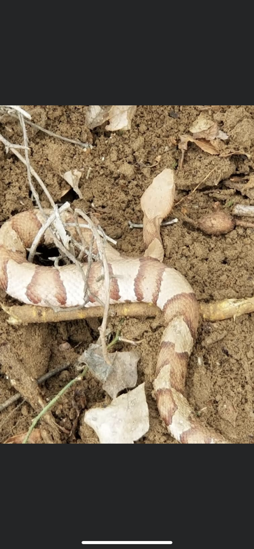 Couple of years ago as I got home from work I noticed the familiar pattern of a copperhead in the leaves on my driveway, So I found me a stick I could beat it to death with and as I moved the leaves to find the head, noted the snake was already dead, it had marks on the back of it's head, and a bite mark right behind the head, I figured out that the feral cat that had a ltter of kittens under my house had dealt the snake a fatal bite, guess she wasn't having any snake anywhere near her kittens! I'm not really a cat fan but I decided she could stay!