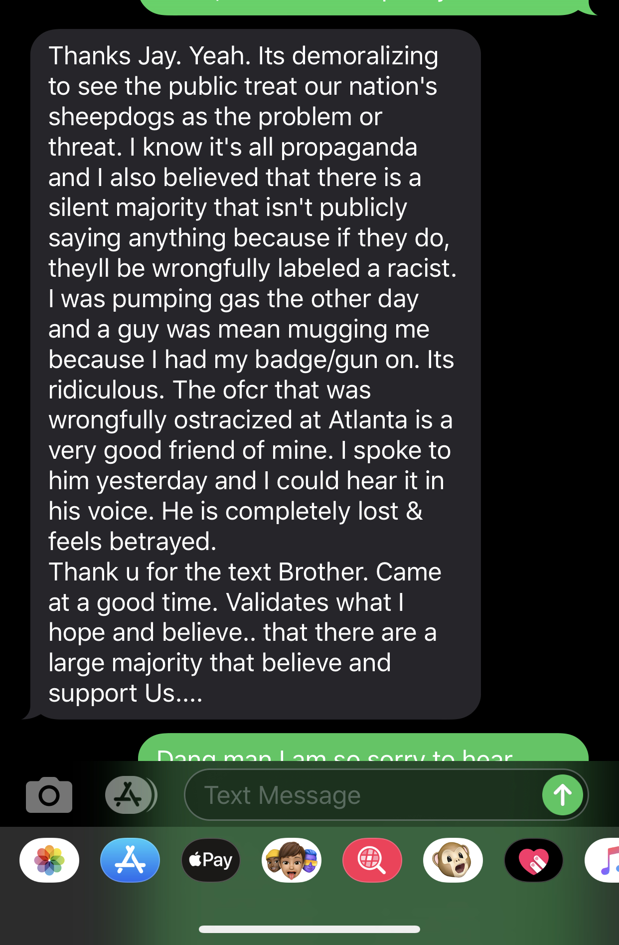 Most all out are good, hard working officers whom I'm proud to associate with. But they need to stop the culture of shielding abusers of authority. There are a lot of other professions that could do this as well.