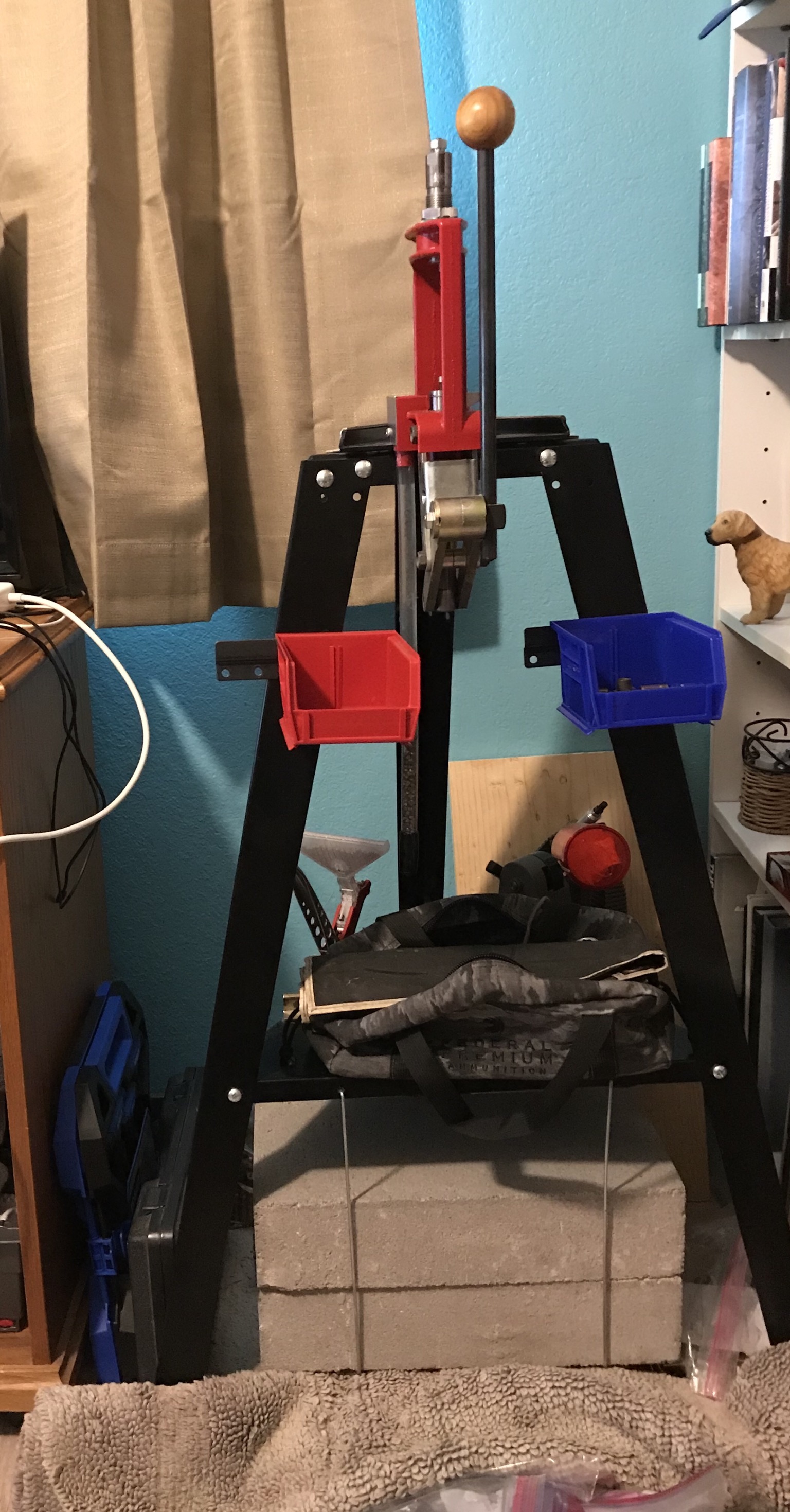 You'll probably want a lot of bins too. I have a whole bunch of those plastic shoebox bins from Walmart that I use to store brass that are going through the reloading process so I don't mix them up.