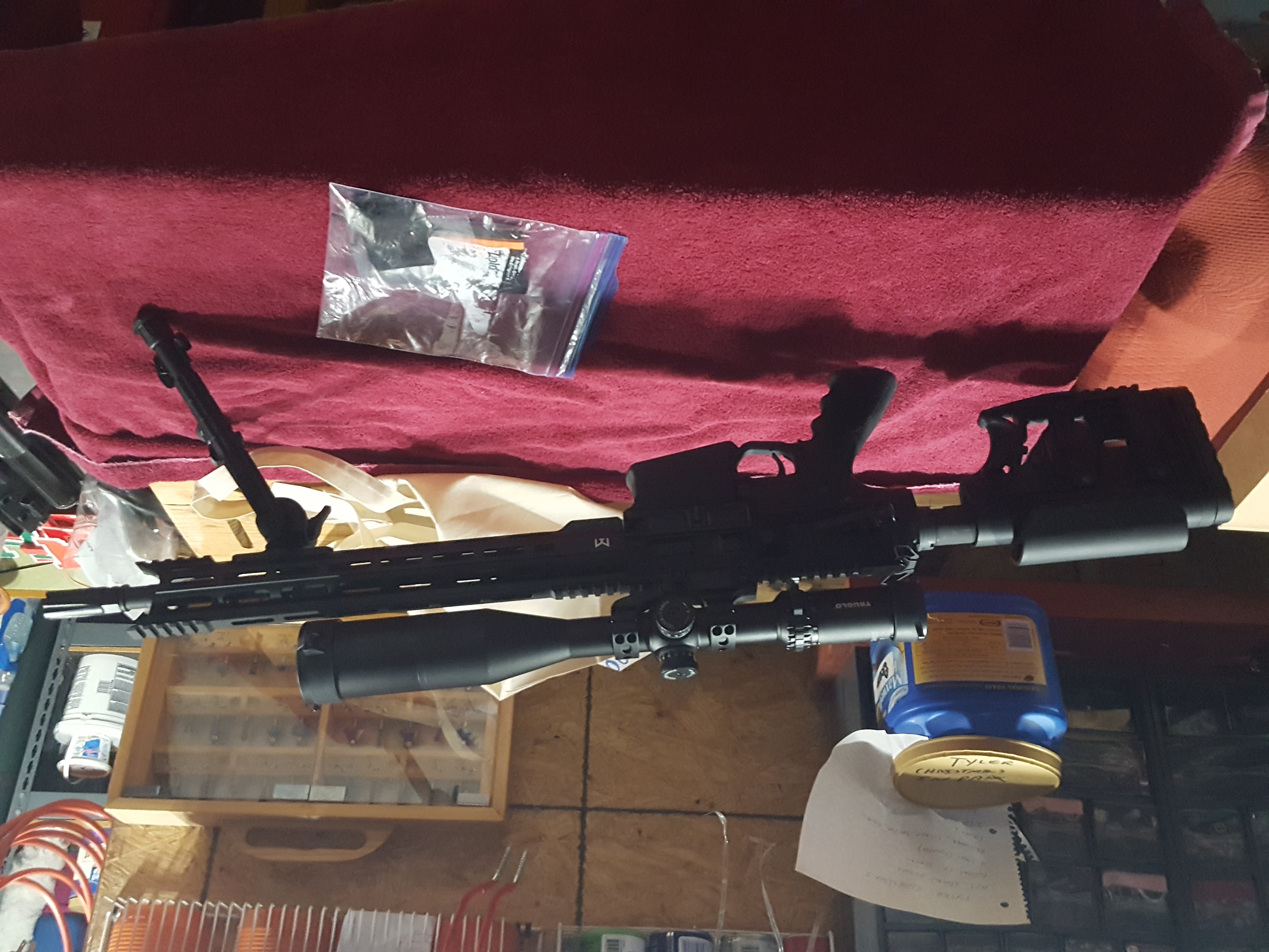 truglo scope eminus 24, 18" barrel, adjustable butt stock for cheek and length, m lok bipod.