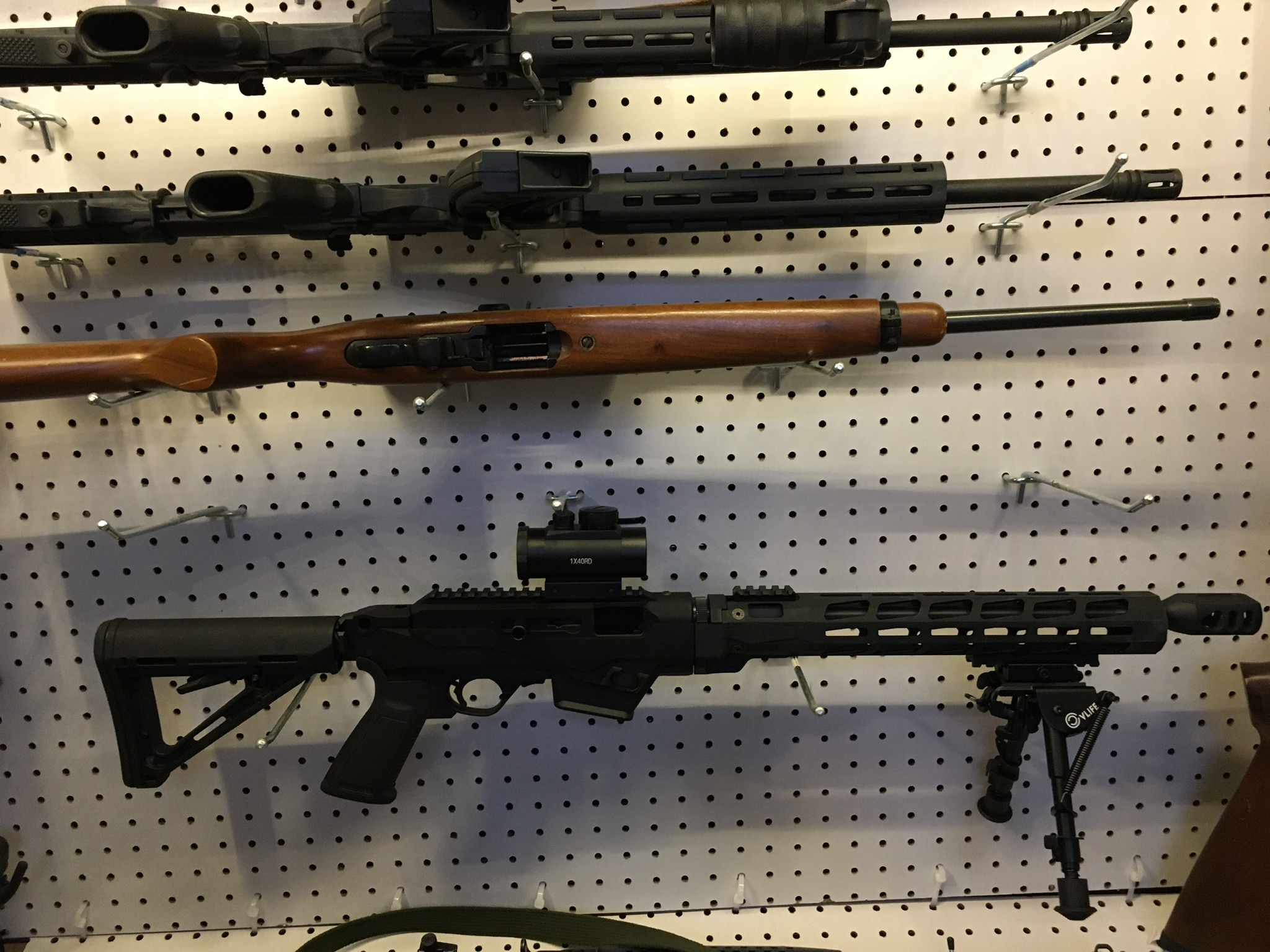 My Ruger carbine with bipod and red dot. Bottom picture shows with the compensator added