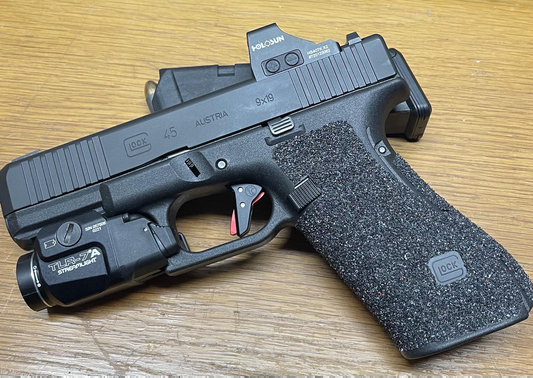 Nice setup! I have 3 different Holosun's mounted on a Glock 17, 45, and a 43X since earlier in the year (and last October in the case of the 43X). Haven't had an issue with anything related to the Holosun, but did have an issue with the plate and how it was mounted to the 43x that has since been corrected. With my aging eyes, I was having trouble focusing between the front sight and the target. No problems now.