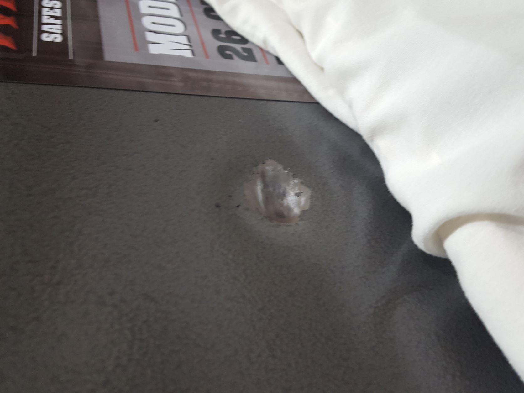 i am so thankful the safe metal outside wall took the impact and smeared to absorb the energy and let the bullet bounce off into the the sheet i have covering the re-loader, vice going through the wall or back into me.