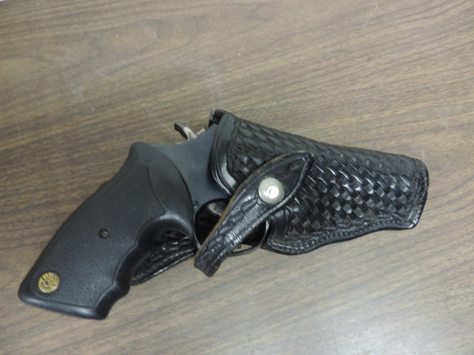 Sold Pending Funds---Older belt-mount basket weave leather OWB holster. Fits a 4" S&W K-frame (pic shows it with a 3" Taurus M441 (not included). Manufacturer's stamp says "Thompson Inc Northridge CA". Model is BTE-43S. Has a stagecoach logo below that. Snaps allow easy fastening to/removal from belt, and will fit any width belt. Overall condition is good, but could use a good coat of mink oil or leather conditioner. No idea how old it is--I acquired it a year or two ago, and don't carry OWB. I found several similar holsters (same manufacturer, different model) going for $40-60. So I am going to ask for $20 for this one. I will split the shipping with the buyer.