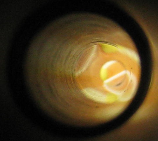 My grandfather had a Mossberg 500 for years without cleaning it, so he asked me to clean it. I was cleaning it when I noticed a bubble in the barrell. I used a bore brush to clean it, and it didn't change.
