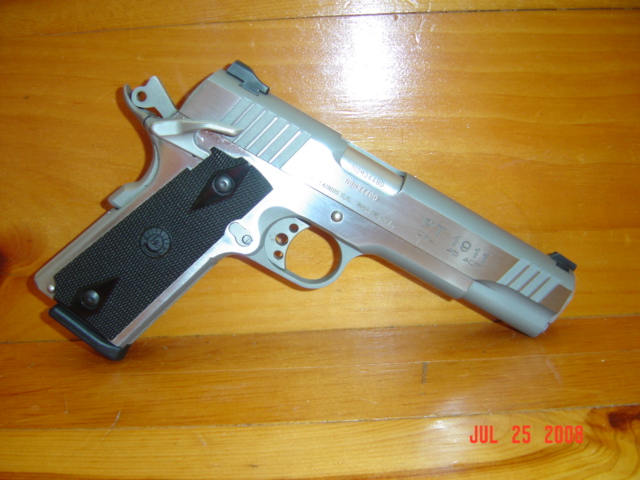 My one and only Para-Ordnance. She's a P12 made in 96. I picked her up for $500 several months ago and recently added the beavertail safety and the Hogue finger grips. The holster is a Desantis Cozy Partner and the ammunition is Winchester Black Talons alternated with Federal Hydra-shocks. If I have to shoot somebody, I want them to stay down.
