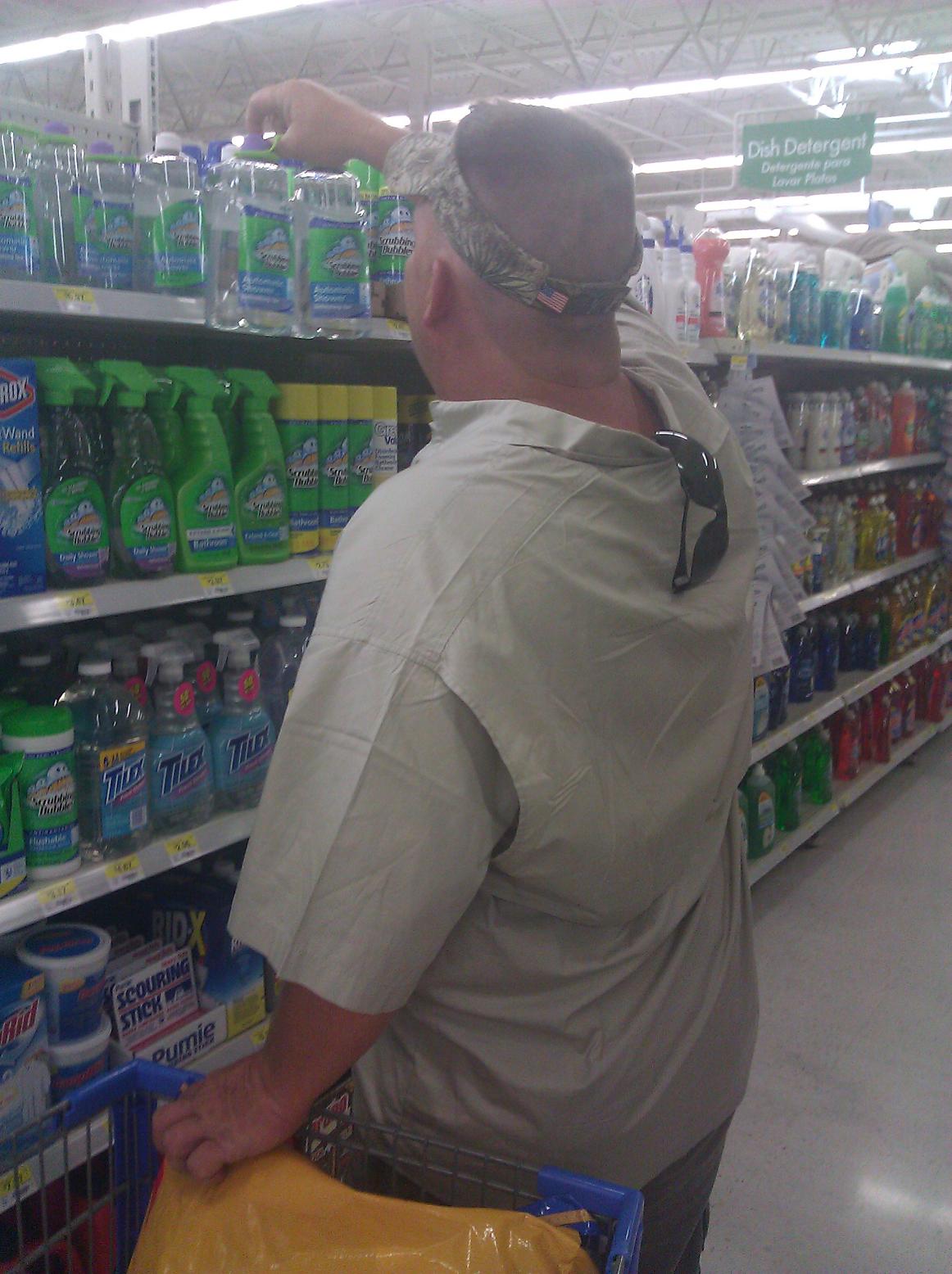 hmmm.... camo hat, camo shorts and camo crocs= MAN WITH A GUN!!!!