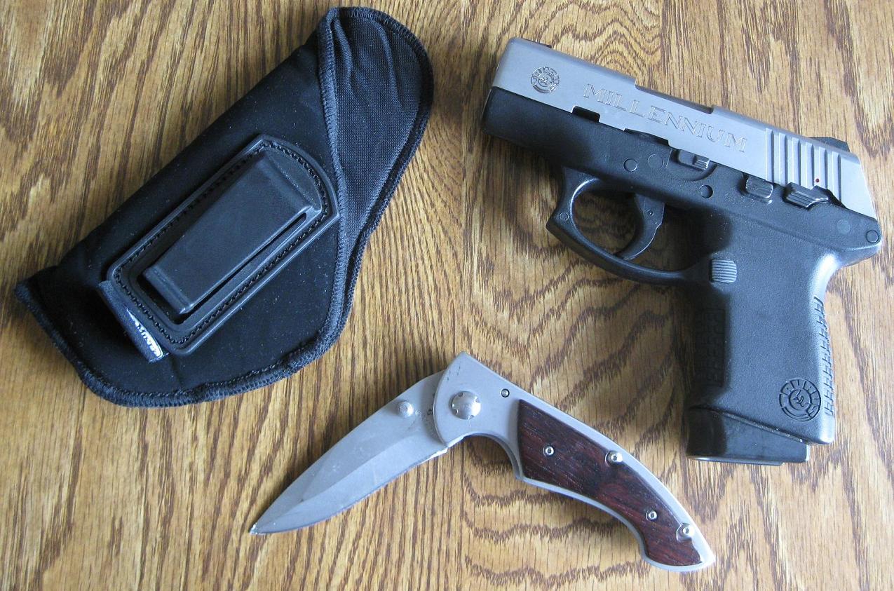 I just got it back from Taurus for a trigger issues (there's a thread on this). It fires great. Still looks good for an older Milleneum. This was before they added "Pro" on the name. I have a single 10 round mag. It's just that 9mm ammo is so much cheaper than .40 S&W and it's cost prohibitive for me to go out and fire this as much as I like. I have about 100 rounds of WWB. Several (~50) personal protection rounds. The ammo goes with the gun. I have an Uncle Mike's holster and the original cheap plastic case. (Knife in pic not included).