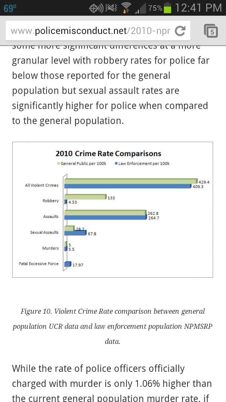 A while ago I posted about an officer that took my having a legal weapon under chl as probable cause to examine the rest of my legal weapons. I just looked up some quick stats, and found that police are statistically more likely to commit crimes than chl holders (about .5% as opposed to .0003% of their respective populations). So shouldn't I be inherently more afraid of him because HE (she) has a gun than they should be afraid of me having a gun, based on evidence? Do I get to examine their weapons? Sorry, I just don't like double standards, and wanted to hear other people's input.