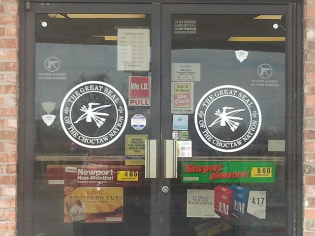 As soon as we crossed into Oklahoma on 37 we stopped at a Choctaw Travel Plaza for a pit stop. I stayed put in the car. Probably a good thing too as we ran into a few folks who started their weekend a little early and it was easy to keep an eye on things from the car.