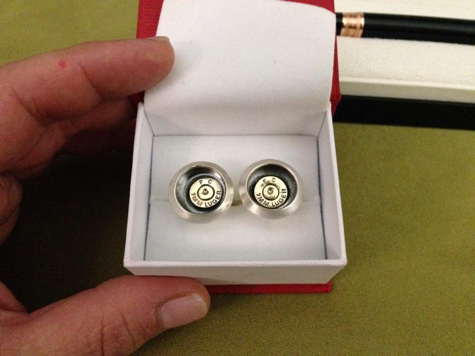 My wife is a jeweler, with her own store here in Houston. For our anniversary, she he made me some new brushed silver cuff links, including some collected brass from a recent trip to the range. Here they are...just thought I'd share with y'all.