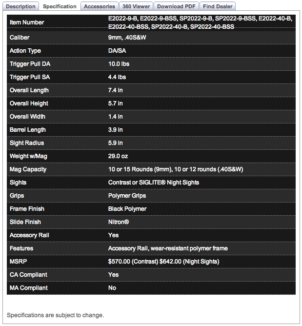 But the SP2022 has no grip safety, and it has a 4.4 lb SA pull with the hammer fully cocked and ready to go. It has a decocker, but no safety which locks the hammer. That means that it was designed to be carried decocked. Carrying it cocked, and not locked, runs against both the manufacturer's recommendations and the buns design parameters. That just seems like a recipe for disaster to me. But to each his or her own, I suppose.
