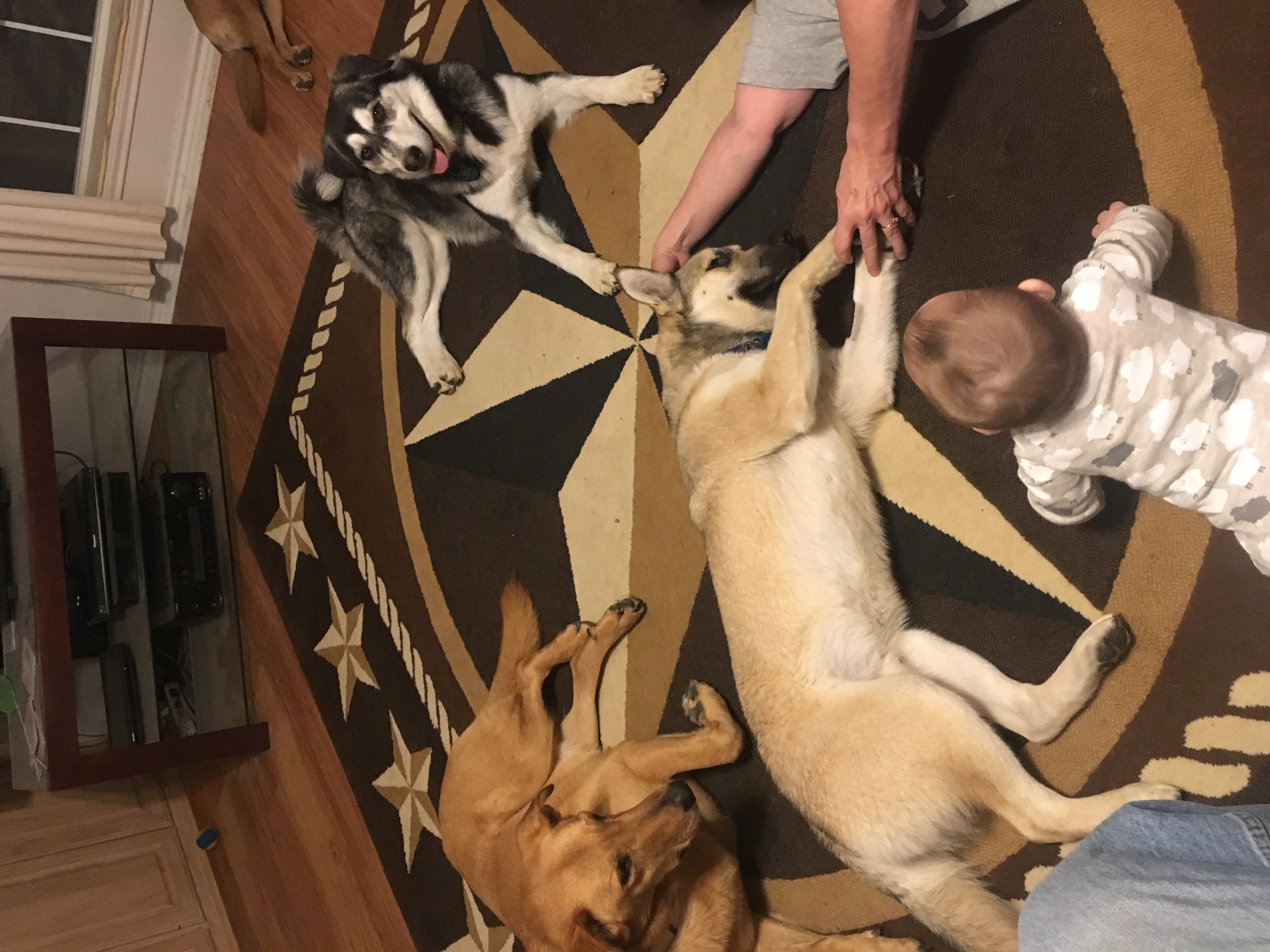 Just 23 months ago.... The day our grandson met the pups My wife and I work with a group called Central Texas Lost And Found Pets as both scanners and researchers as well as Foster and transporters for group pets, our members having found a lost pet,,,,contact one of group "Scanners" who come out and scan the animal for a microchip, then we research (i have a very particular set of skills) and locate last known owners. Most time it works out, sometimes not.... But if the pup is chipped, there is a a very good chance they will be reunited.