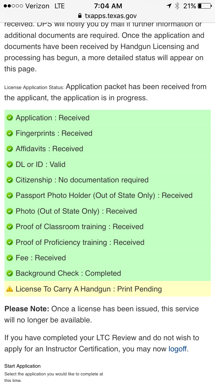 Justanotherguy wrote:I agree that I may have come across crass, but I did not intend to criticize anyone's character. If anyone was offended, or felt I was painting with much too broad of a brush, I apologize. I merely stated facts. If you have ANY criminal record, the process will take much longer and you will need to exercise patience. Calling will do no good. They can drag the process out to 180 days and beyond, if they feel it's necessary. I understand that this is where "like minded" people come to share frustrations and vent, but I stand by my statements.marcotanquinobjj wrote:Justanotherguy wrote:New to the forum, but I have been reading this since before I even applied. My story is quite different from so many here. I took the class on Thursday, March 16th. I was lazy and have a life so I didn't go for fingerprints until Saturday, April 8th. I took all of my paperwork to the post office that day and mailed it with a tracking number. The guy told me it would probably be there Monday or Tuesday. I checked the tracking number on Tuesday and it had been delivered that day, the 11th. I didn't check the status again until the following Tuesday, the 18th. It showed that the process had been started and pretty much everything was green, except I believe the last 2 lines. Checked the status again on Thursday the 20th, print pending. On Monday the 24th, it showed mailed. I think I received it on that Thursday. To be upfront, I have NO criminal record and have lived in Texas my entire life. I see people here that are talking about calling their representatives, calling the licensing department everyday, etc. GET A GRIP!!! I carry due to the fact that I work nights and am out at night frequently. It is for self protection. I still don't knowingly put myself in places or situations that are potentially unsafe, armed or not. I have no hero complex and it doesn't make me feel more powerful, importantalizing, or truthfully, any different. The way some of the posters here express themselves leads me to believe they can't say the same. Some have criminal records, regardless of how long ago they were, the fact remains that they have criminal records or have moved around, or they're backgrounds have to be more thoroughly screened. What's wrong with that? You are asking the state, and other innocent individuals, to trust you to carry a deadly weapon. Some here can't even control their temper long enough to wait, though sometimes extended periods of time, for that process to occur. I say to those people, if you've made it this long without legally carrying a gun, what's the big rush? It's not going to make you any different than what you are today. Have patience, if the process is slow for you, so be it.