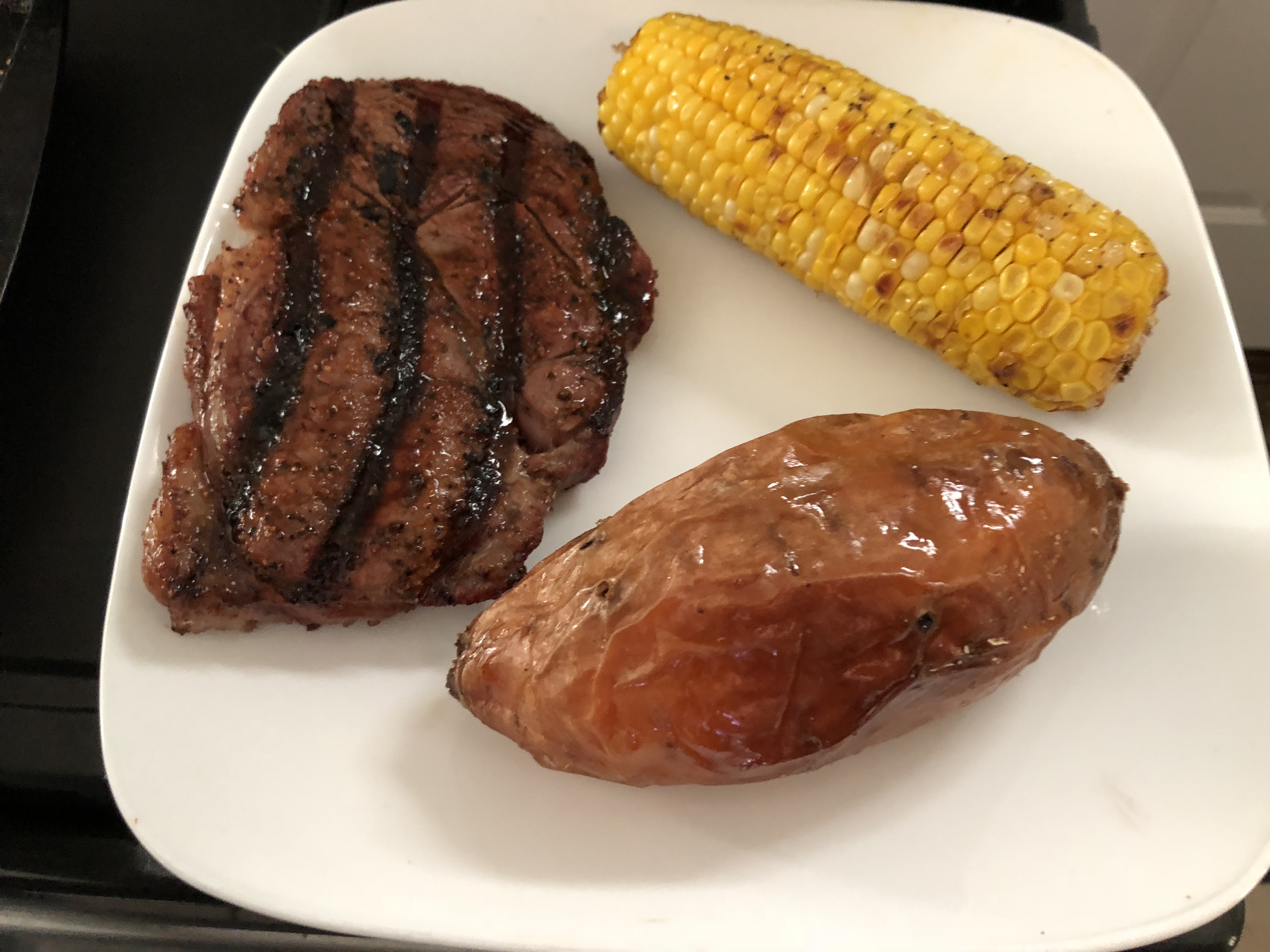 Did you smoke it low and slow or grill it at a higher temp than smoking? How long did the potato and corn take?carlson1 wrote: Tue Jun 26, 2018 7:32 pm Ribeye, corn, and sweet potatoes on our pellet grill for supper tonight. Don’t ask because there is nothing left.![]()