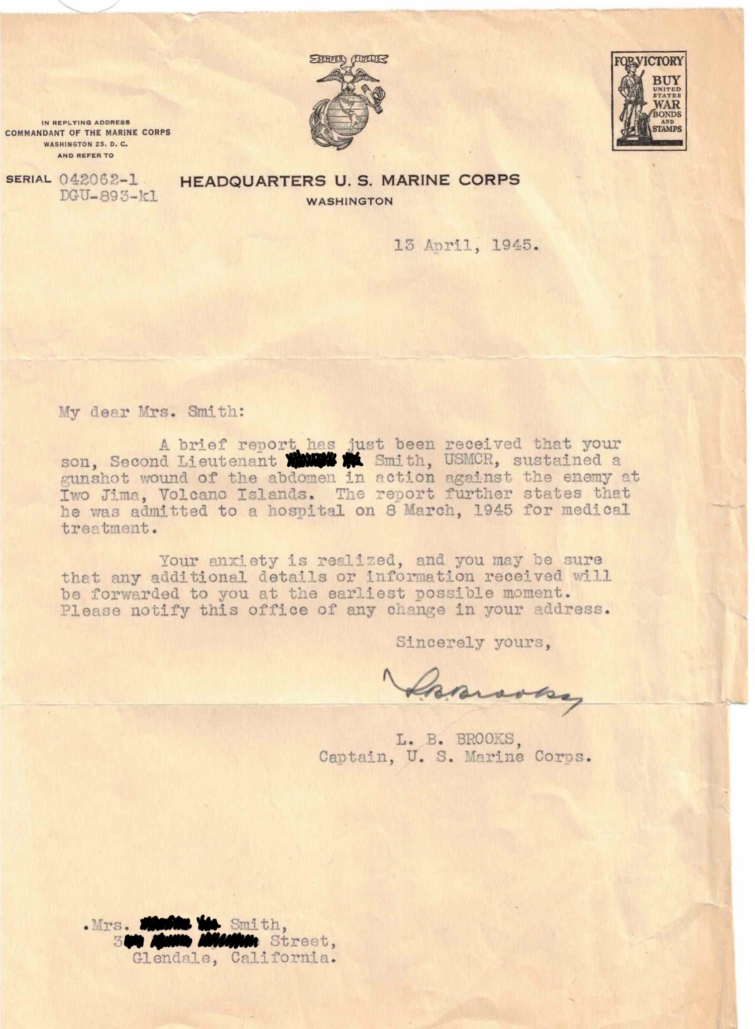 Wow! Was Lt Smith your father, or was this a U.S.M.C. screw up sending a notification to the wrong address??