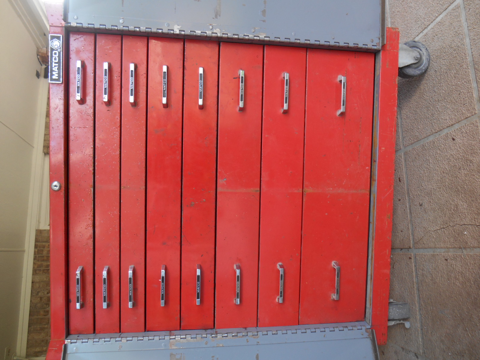 --Two full-size (upper and lower) Matco tool boxes. Real American steel, 1980s quality, lifetime warranty. Top is 10 drawers plus lift-open lid space. Bottom is 9 full-width drawers. $1600 the pair. Price drop--$1400/pair(don't know why the image is rotated--it is upright on my pc)