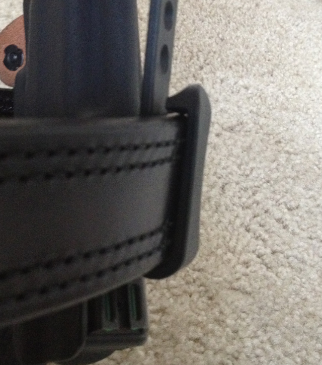 I worry those pictures will not do it justice. It's a double layered, stitched, hand crafted belt. I was really impressed by his workmanship and attention to detail. The sizing was pretty standard, measured from beginning of leather to hole used most often. I may have miscalculated on mine, and it's about a notch tighter than it should, but there's still room to adjust. I posted a picture of standard CompTac clips, to show that it's snug, but works.