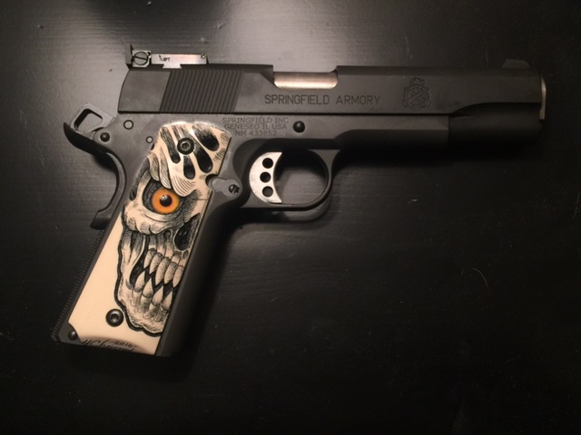 BulldogBorders wrote:I had seen this guys work in the past, but only online. I came across his booth at the Mesquite gun show this last weekend and found that his work was even better in person. Had to find an ATM and pick up a pair. Rushed home to mount them up.