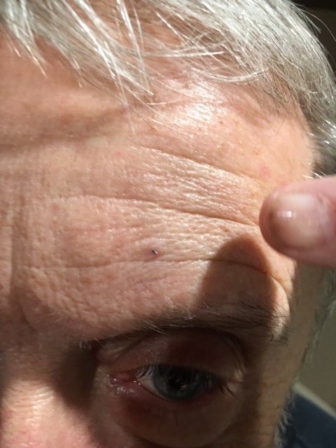 The gun went bang and I felt something like a needle sticking me in the forehead. I pretty much knew what it was right away, and sure enough, a little bit of the bullet had shaved itself off entering the forcing cone and flown backwards and to the side where I was standing. If it had hit a little bit lower, and if I had not had on my eyepro, it would have stuck in my eye instead of my skin.