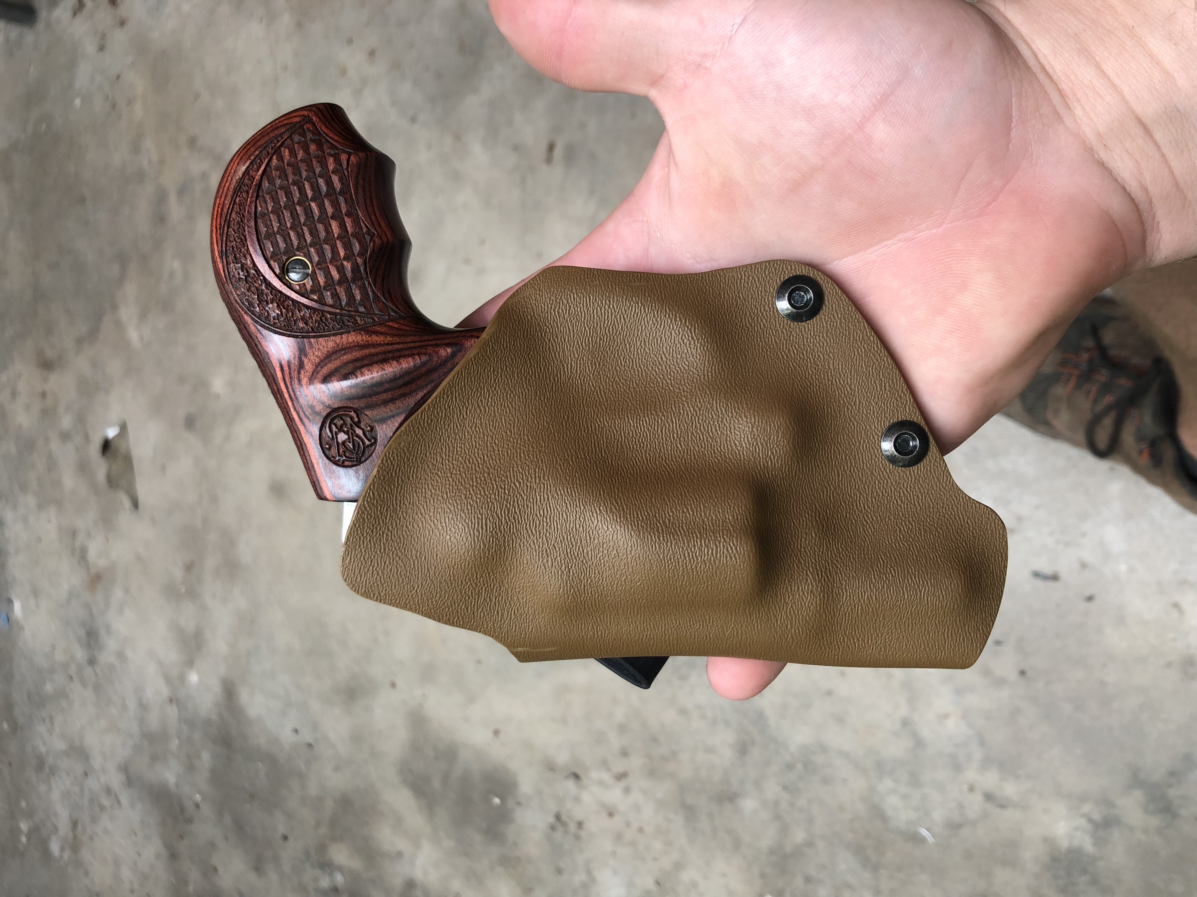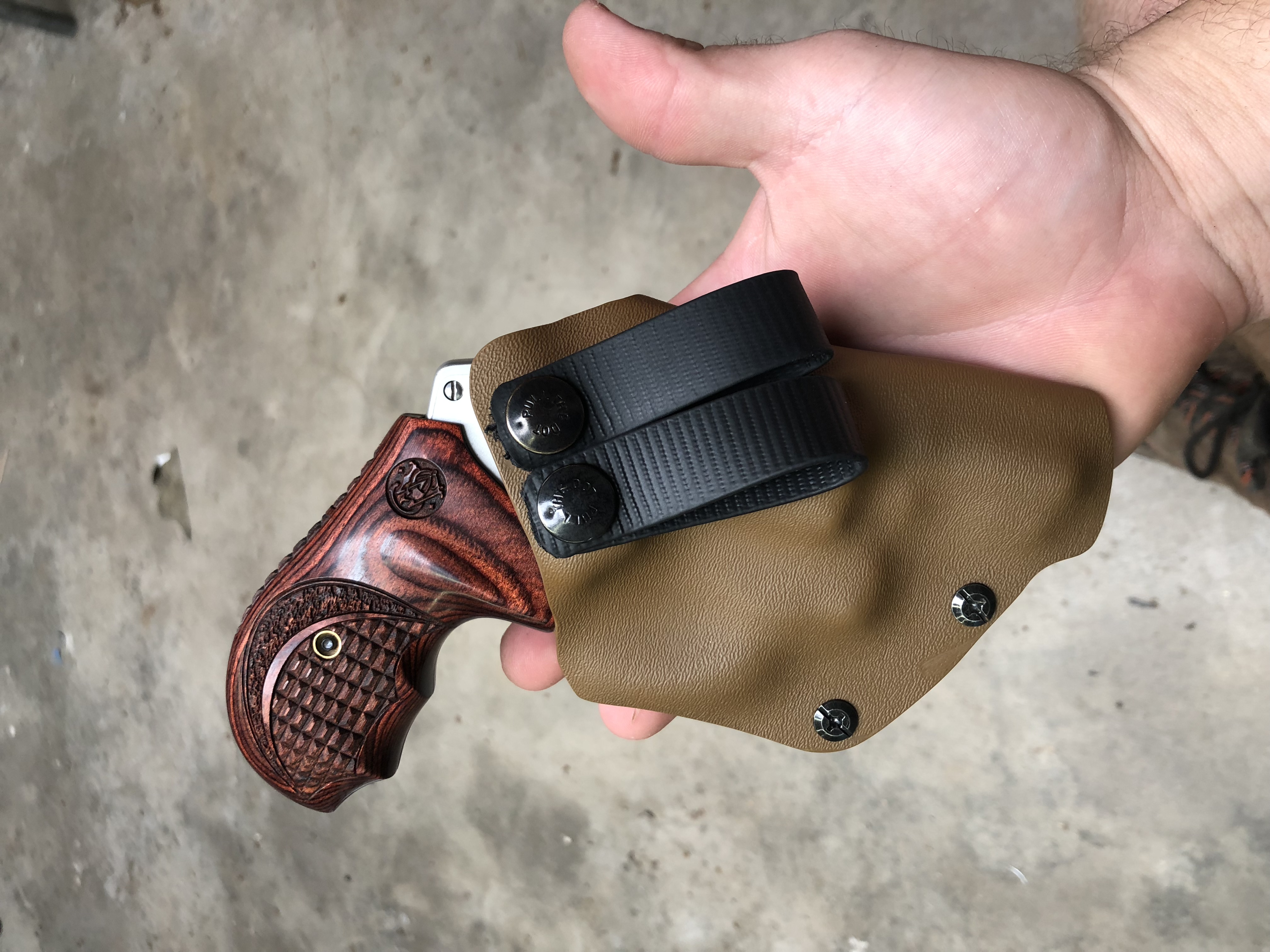 I got sick and tired of trying to find the right holster for my S&W 642 so I decided to try and make one. I wanted 4 things. Kydex, built in sweat guard, retention screws,and pull the dot soft loops. I’m sure I could have custom ordered one that way but it would have cost more than I than I wanted to pay. So I came up with this design and it works great. I set the Can’t of the holster to more of a 45 degree angle so it conceals great and you can get a full firing grip on the gun when drawing. It rides high and tight and is as comfortable as Kydex can be. What do y’all think?