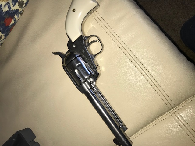 Selling a nearly fired (max 40 rounds) Ruger New Vaquero , Stainless Steel with original ruger plastic grips and replacement simulated ivory plastic grips,. Beautiful gun, solid and in great condition